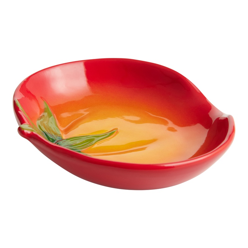 Hand painted by skilled artisans with ombre shading, our ceramic tomato-shaped spoon rest adds a fresh burst of summer beauty to your kitchen decor. Detailed with lush leaflets, this figural kitchen tool will showcase its red and green colors all season lo